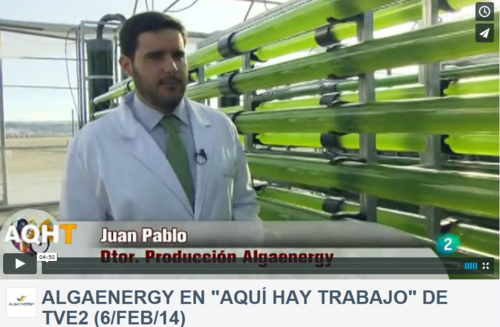 The TV program “Aquí hay trabajo” (There is work here) of the Spanish TVE2 emits on the 6th of February 2014 a report where AlgaEnergy is featured.